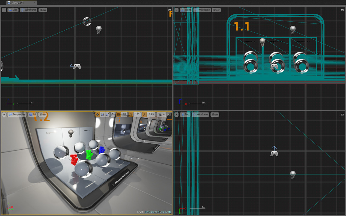 뷰포트란? 우리가 직접 보는 화면입니다. 언리얼 엔진4는 이것으로 뷰를 움직여 사물의 위치를 정해줄수 있고