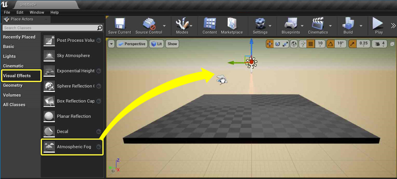 애트머스페릭 포그(하늘) 액터는 레벨에 기본적인 하늘을 추가하여 우주같은 어두운 레벨이 아닌 노을빛이 있는 레벨이