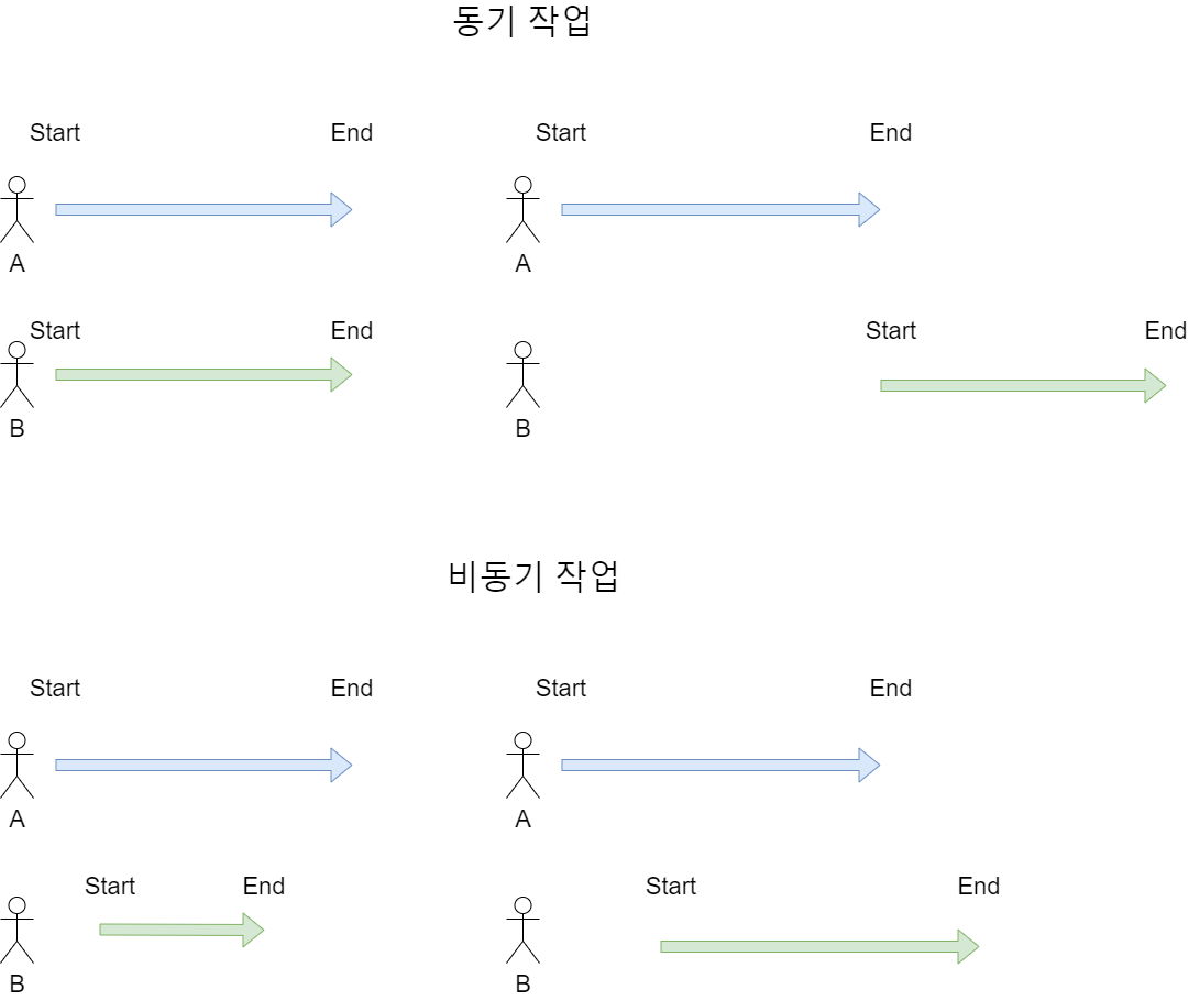 - 결과값을 기다린다는 것 : A 함수에서 B 함수를 호출했을 때, A 함수가 B 함수의 결과값을 기다리느냐의 여부를 의미한다.