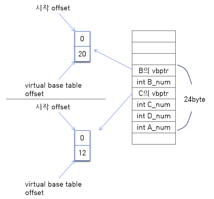 그리고 vbptr은 int A_num의 위치를 어디있는지 알려주는 역활을 합니다(offset 을 가르킴).